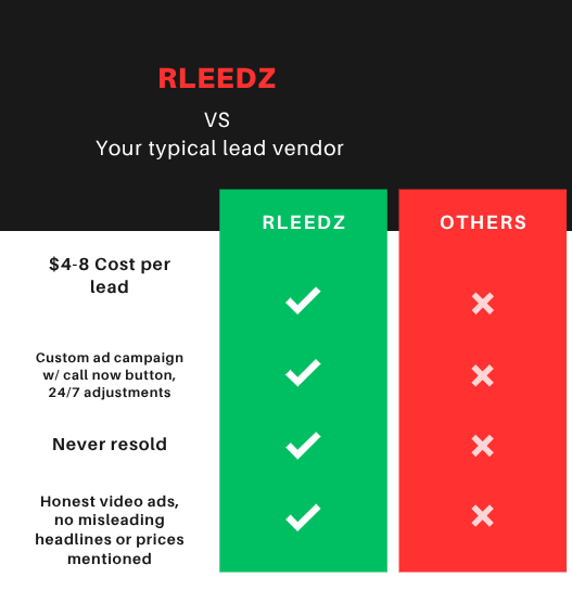 RLEEDZ gives agents what every lead vendor promises—but never delivers. You get exclusive leads, a fully custom Meta ad campaign, and $5–$7 lead costs without recycled data or fake “discounts.” Our ads stay honest, compliant, and built to convert. Plus, we monitor and adjust your campaign 24/7 to keep your cost per lead as low as possible. No guessing. No resold leads. No BS.